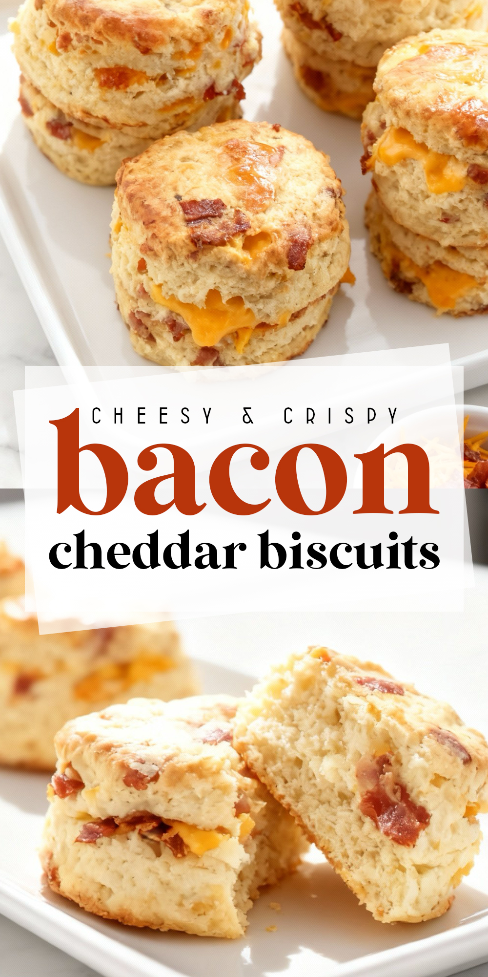 Smoky bacon and sharp cheddar come together in these indulgent, savory biscuits. They’re perfect for breakfast sandwiches, brunch, or simply enjoying straight from the oven.