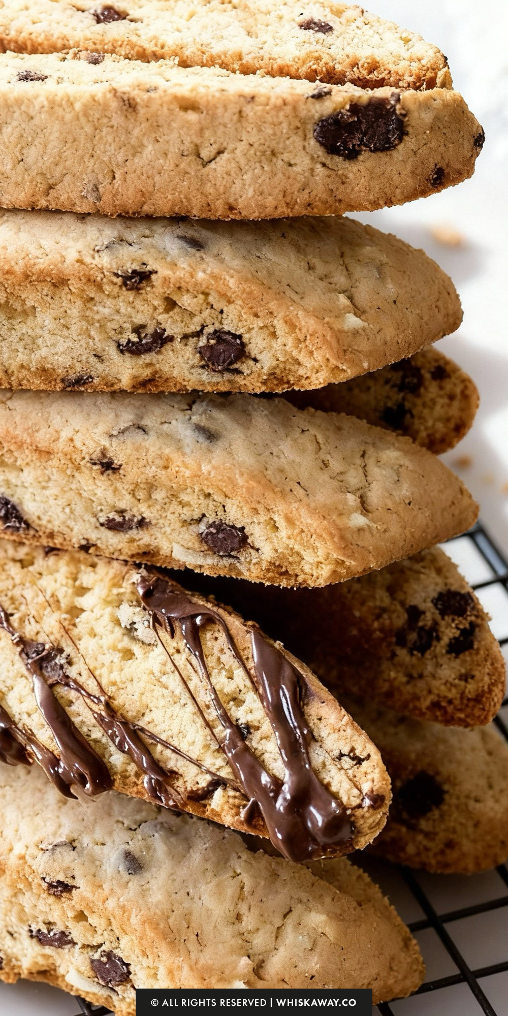 When dipping in chocolate, make sure your biscotti are fully cooled and the chocolate is melted smoothly.