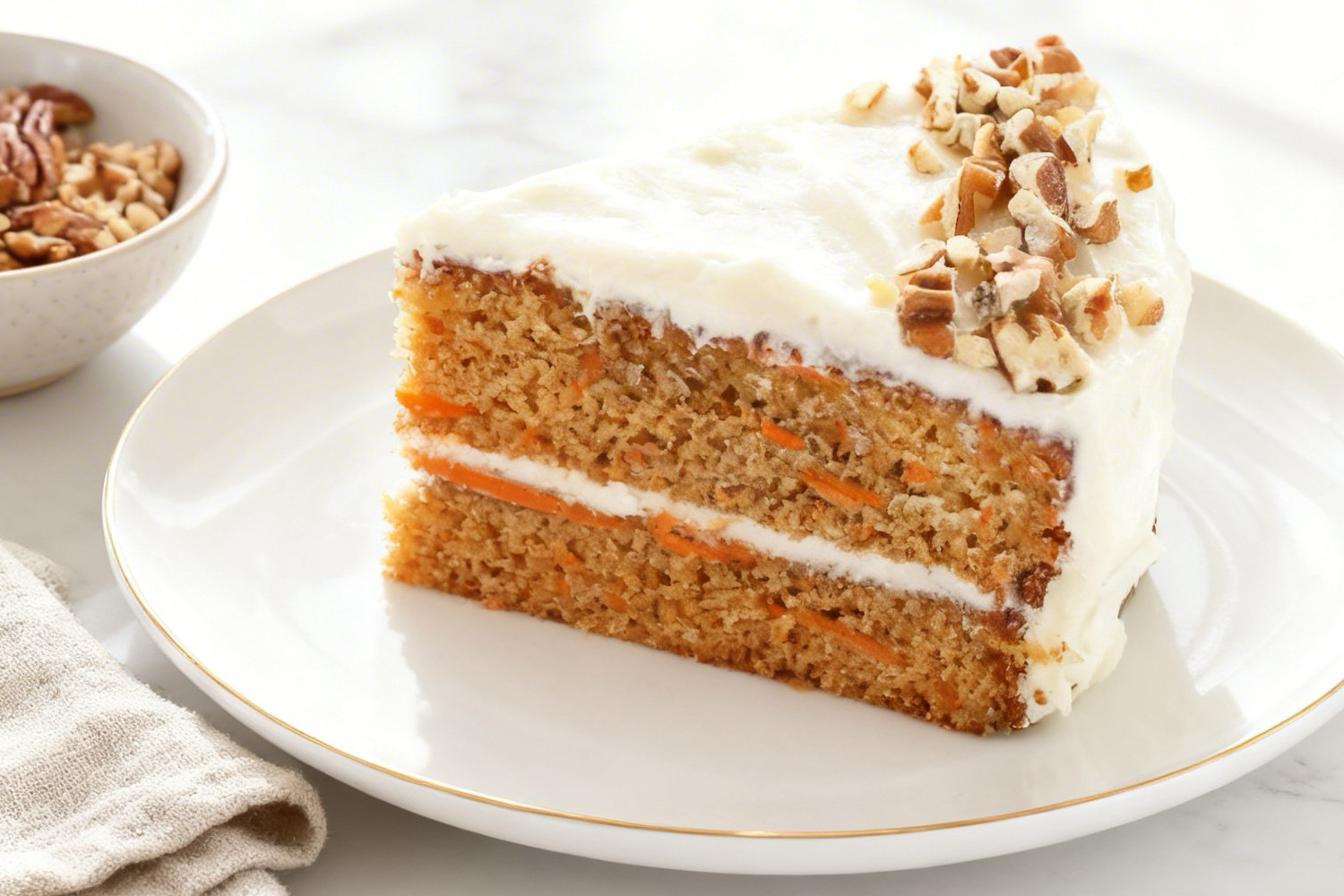 It is highly recommended that you grate your own carrots. Pre-shredded carrots are often woodier, drier, and coated in cornstarch to prevent sticking. Freshly grated carrots are much more tender and release the essential moisture needed to keep the cake’s crumb plush and soft.