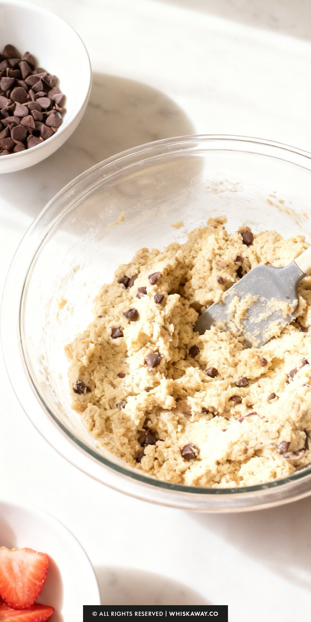 Mix just until the flour is incorporated and the chocolate chips are evenly distributed. Overworking the batter can activate gluten, leading to tough, dry biscuits instead of light, tender shortcakes.