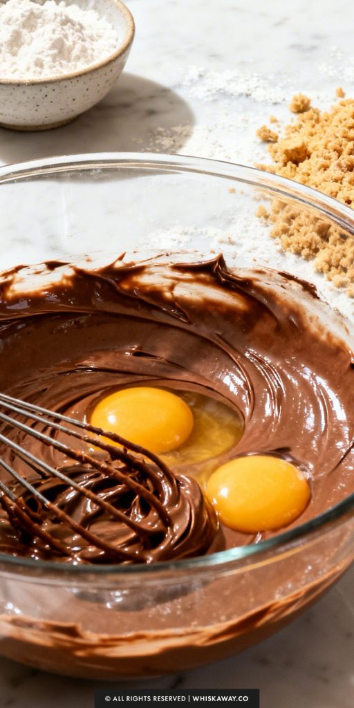 - In a separate bowl, whisk together the chocolate hazelnut spread and eggs until smooth.