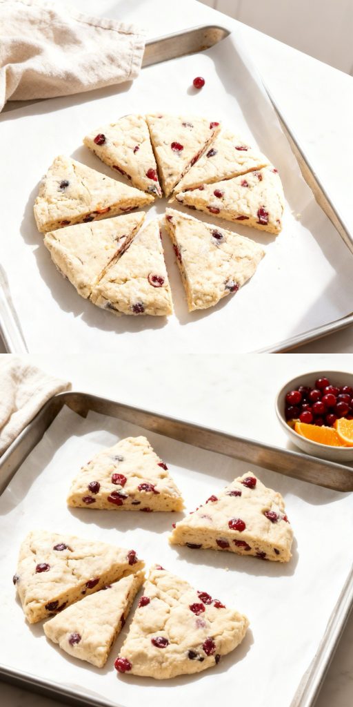 These scones are a masterclass in seasonal contrast: the sharp tartness of fresh cranberries paired with the floral sweetness of orange.