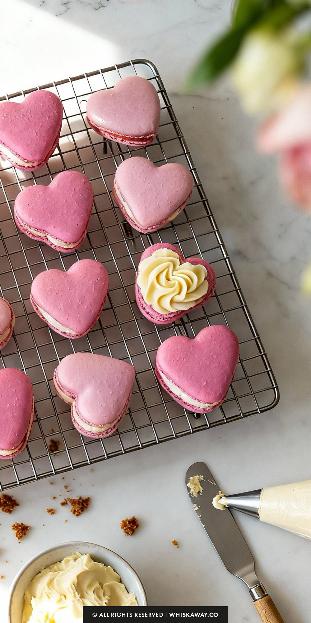 🔥 These heart shaped macarons pair beautifully with elegant Valentine’s treats like pink buttercream cupcakes, delicate meringue kisses, or romantic chocolate covered raspberries.