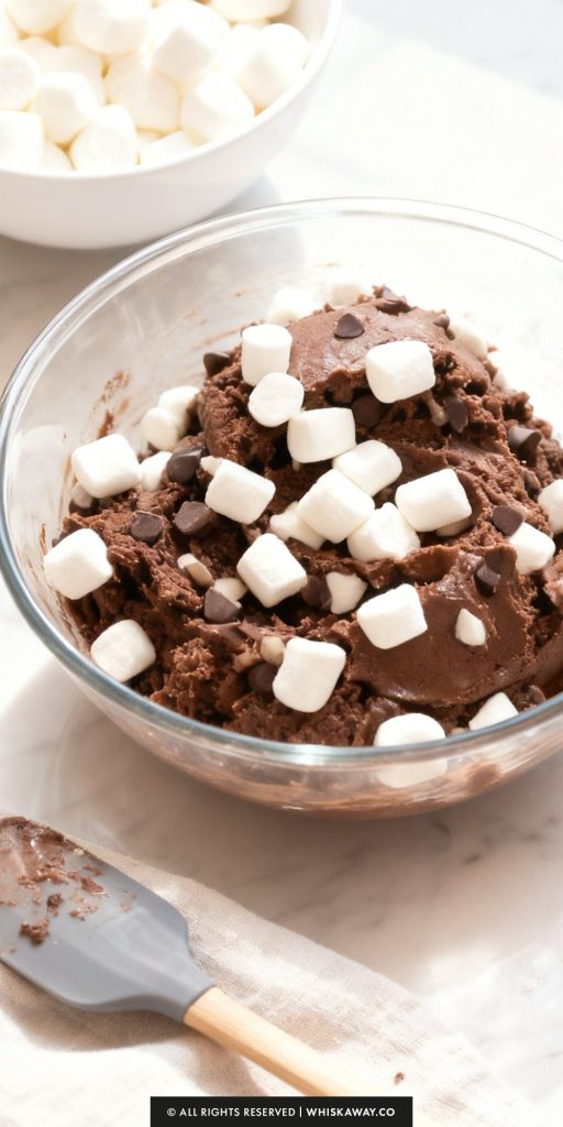 - In a separate bowl, whisk together the flour, hot cocoa mix, baking powder, baking soda, and salt. Gradually add the dry ingredients to the butter mixture, mixing on low speed until everything comes together into a soft dough. Gently fold in the chocolate chips and Mallow Bits.