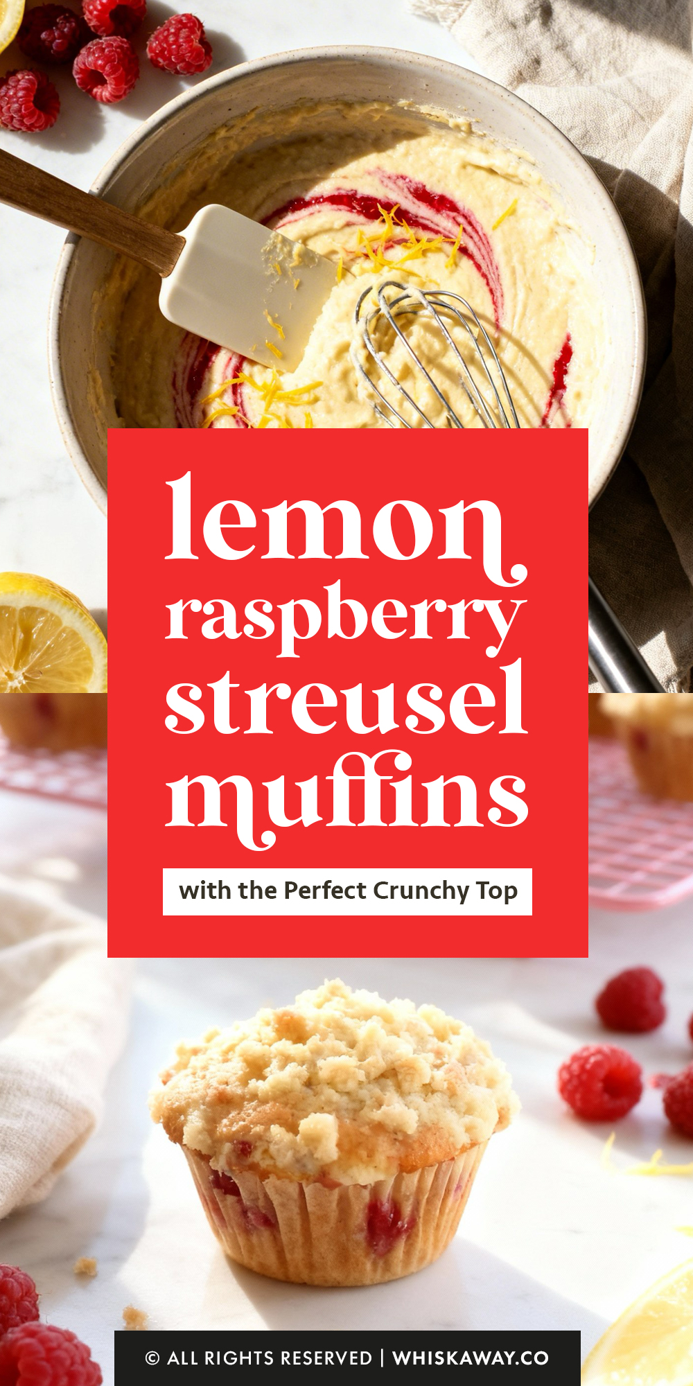 These muffins burst with juicy raspberries and zesty lemon, topped with a buttery streusel crumble that adds texture and sweetness.