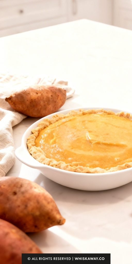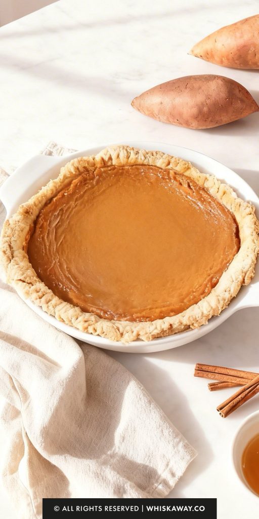 Sweet potatoes contain natural fibers that vary by variety. For a truly professional, “silk-like” texture, you can press the blended mixture through a fine-mesh strainer before pouring it into the crust. This removes any stubborn fibers that the blades might have missed.